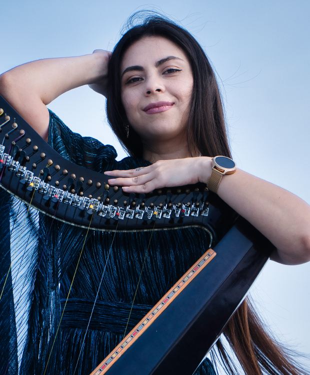 Jessie Segura is a versatile Colombian harpist recognized for her ability to perform a wide range of musical styles on the traditional Llanera harp. She holds a Bachelors degree in Music with a focus on composition and arrangement and has appeared at leading harp festivals across South and Central America, gaining international recognition for her artistry.