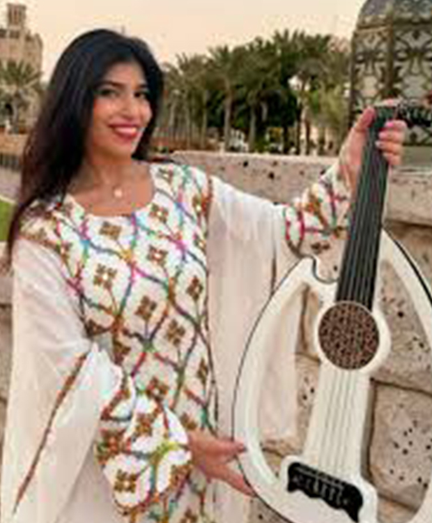 Nabiha Atallah is a renowned Tunisian oud artist, cultural ambassador, and founder of Moon Events & Entertainment, based in the United Arab Emirates. She holds a Bachelors degree in Music and Musicology from the Higher Institute of Music in Tunisia and has built a distinguished career performing across the GCC, France, and North Africa.