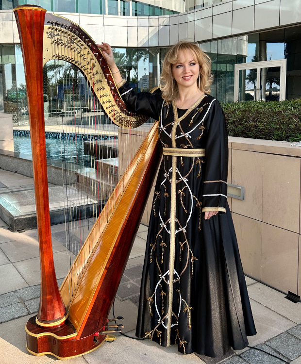 Olga Efimova is a highly accomplished Russian harpist, flutist, pianist, and qanunist based in Abu Dhabi. A graduate with honors from the Gnessin Music College and the Moscow Academy of Music, she excels in performing classical, pop, and Arabic traditional music. Her mastery spans concert, electric, and Celtic harps, and she has appeared as a soloist as well as with orchestras, chamber groups, and ensembles worldwide.